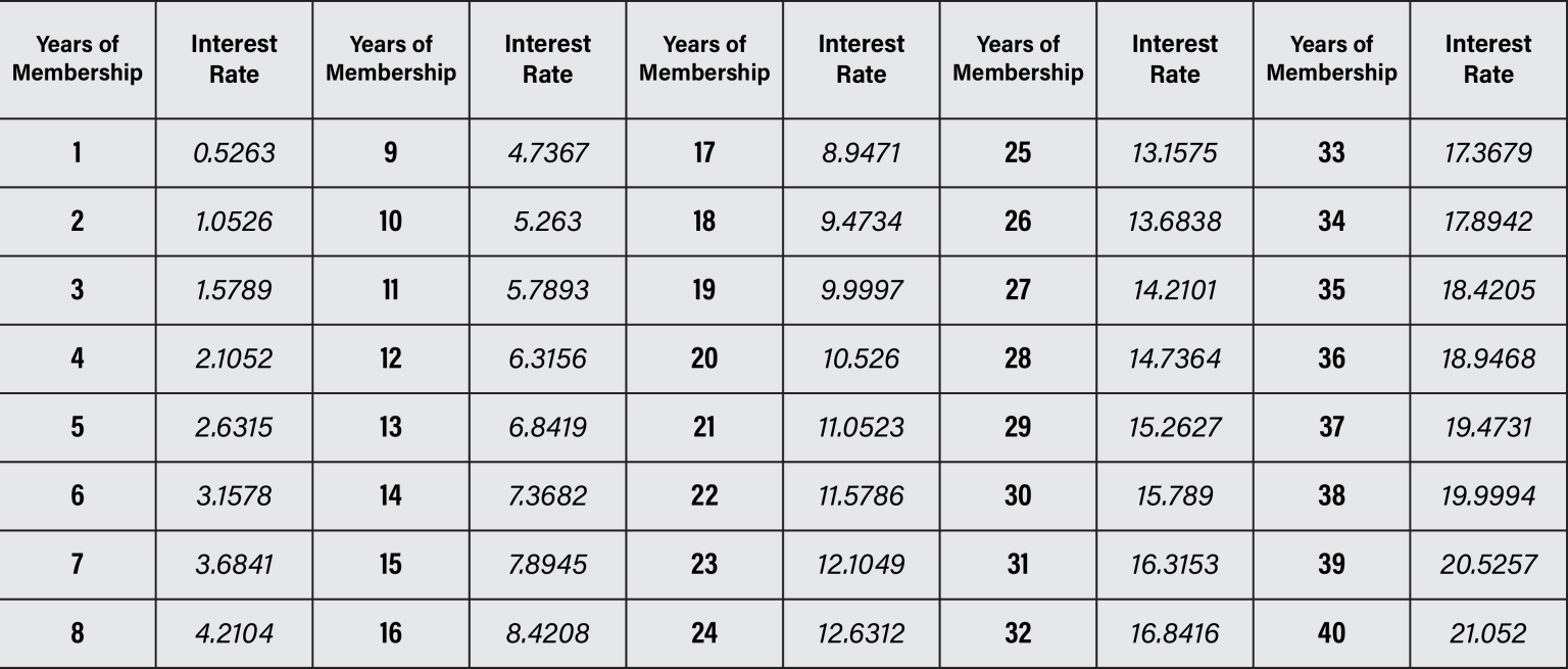 The above table shows the bonus rate calculated on Shares when members apply for RETIREMENT, DEATH & BED RIDDEN RATE/TERMINATION ON MEDICAL GROUNDS.